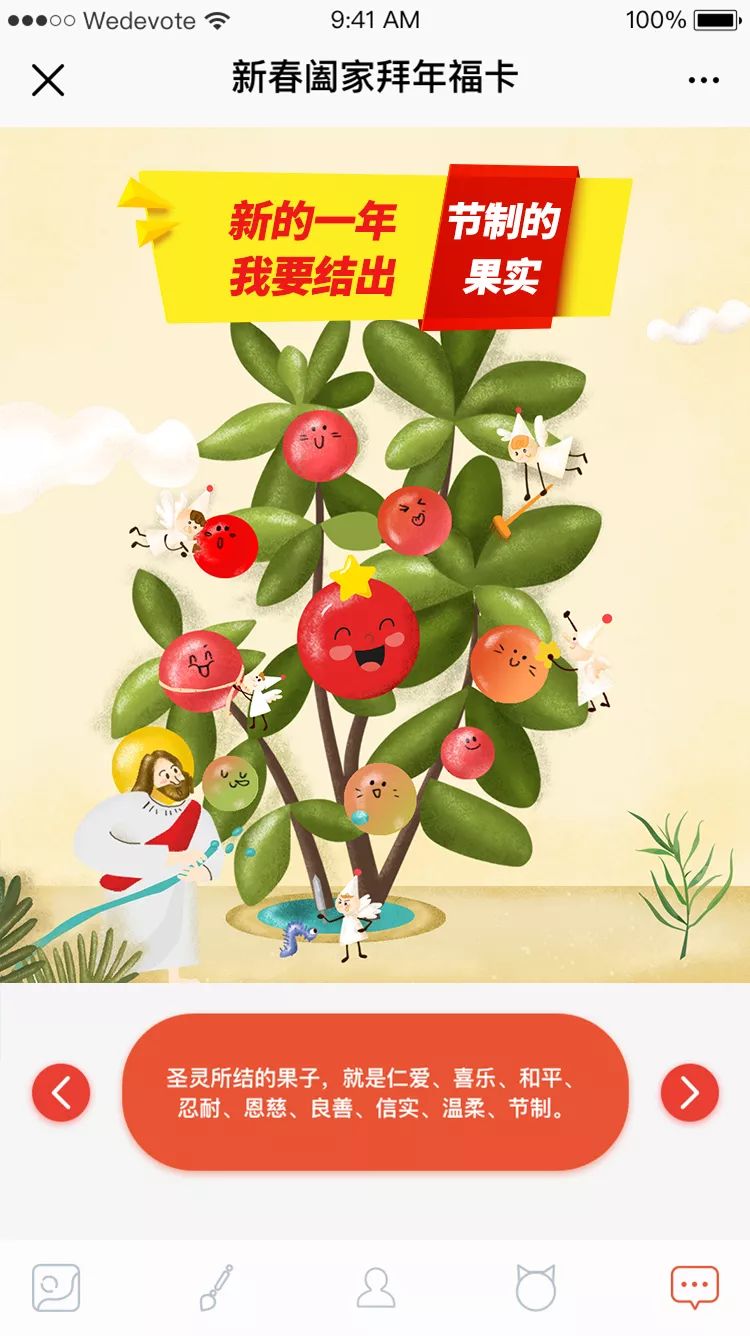 我们的福卡,在“送出祝福”的最后环节,会自带一个很好的贺卡元素祝福视频,用轻松幽默的方式,告诉大家春节除了有家的温暖,还有耶稣给大家永生的盼望;如果你想祝福的对象已经认识耶稣,我们也有一个超级poweful的经文视频来鼓励你的朋友!