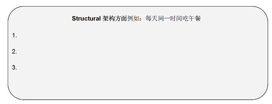3. 最后,很重要的是尽量有意识地为你的生活设立架构。记住你设定的目标,例如你可以把目标写在纸上贴在镜子上,或者你工作的地方。